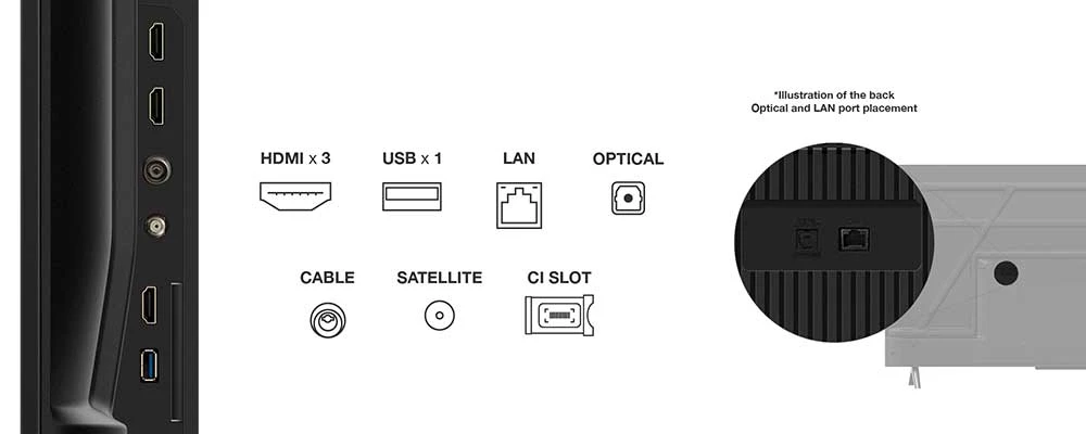 LED televizor s jemným rozlišením 4K UHD (3 840 × 2 160 px) • řada V6C, rok 2025 • úhlopříčka 43″ (cca 108 cm) • obnovovací frekvence 60 Hz • HDR10 • obraz posílený umělou inteligencí • technologie šetřící zrak • 2kanálový zvuk (celkem 20 W) • Dolby Audio • operační systém Google TV • 3× HDMI (včetně HDMI 2.1 | HDMI eARC) • USB 3.0 • optický výstup • LAN • Wi-Fi 5 • Bluetooth 5.4 • podpora: Miracast, Google Assistant, Google Cast, Apple AirPlay