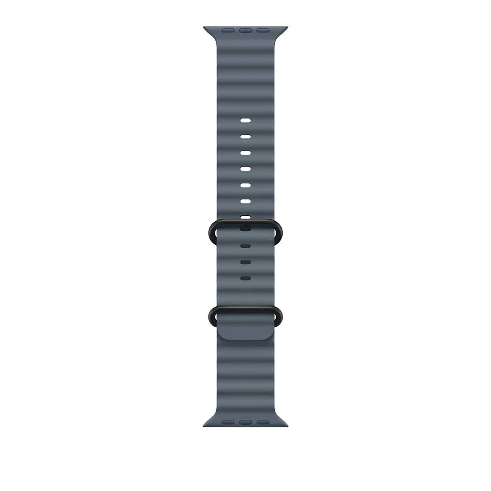 Oceánský řemínek k Apple Watch • pružný řemínek • titanová přezka • prvky odolné proti korozi • velikost pouzdra 49 mm • barva: ocelově modrá s kovovými prvky z černého titanu