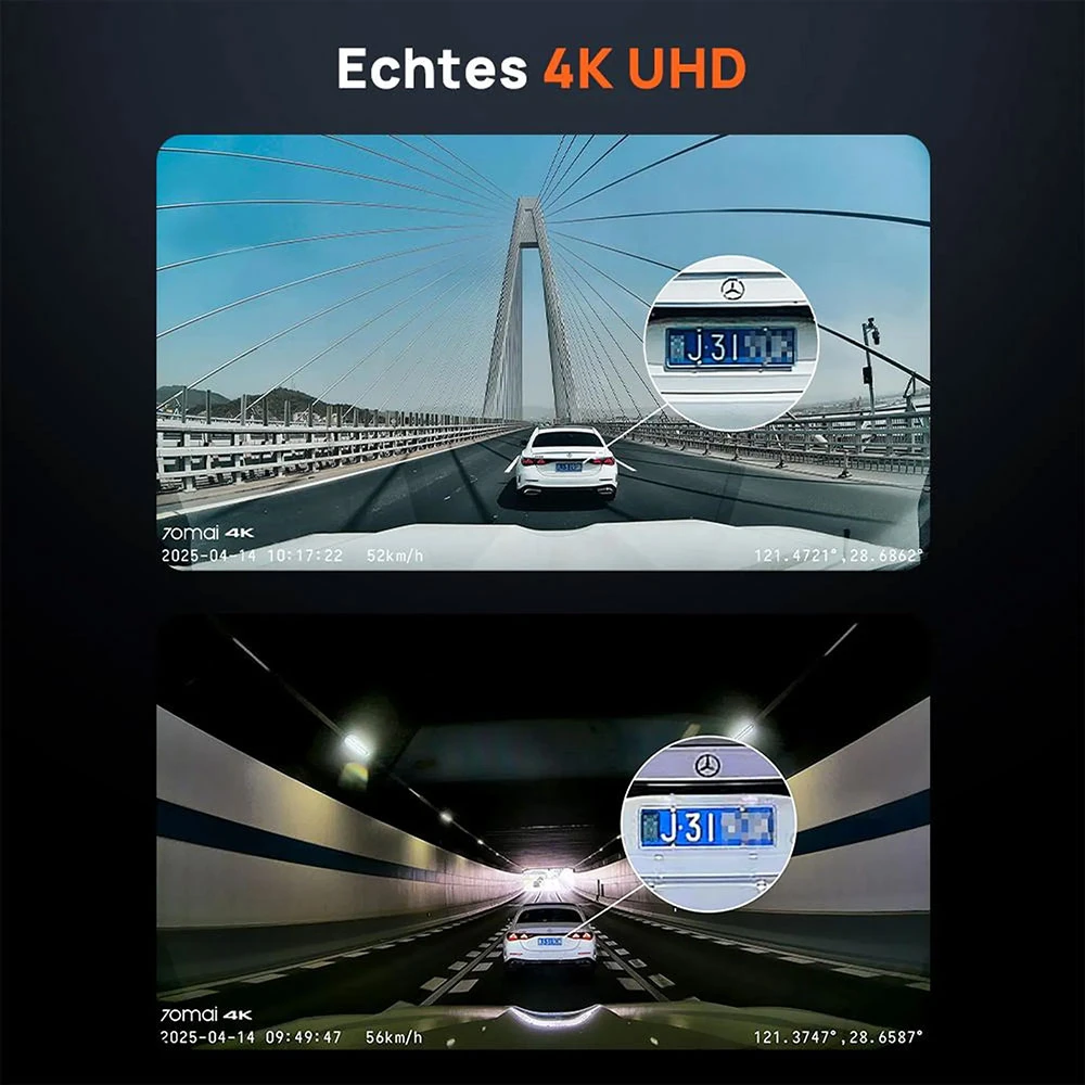 - 4K UHD rozlišení (3840×2160) @ 30 FPS – nativní záznam bez škálování, každá registrační značka a dopravní značka zachycena s fotografickou přesností