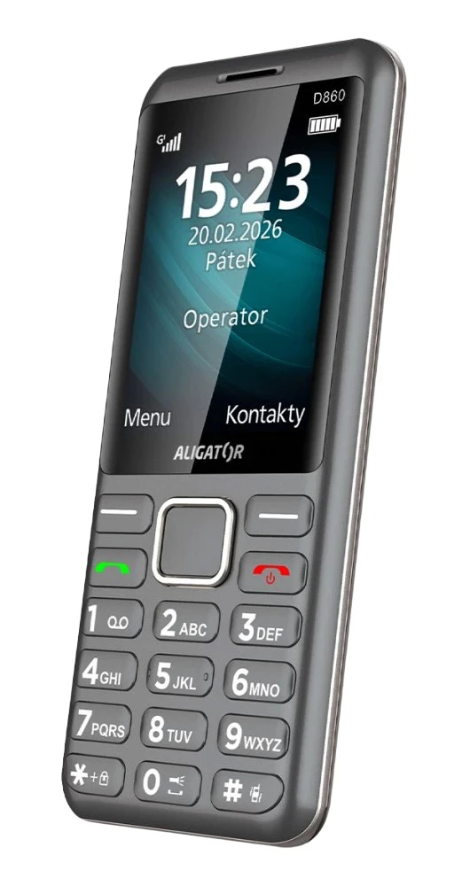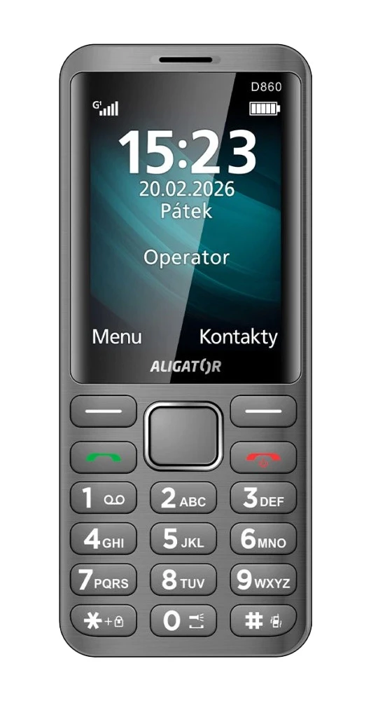 Telefon Aligator D860• Baterie • Nabíjecí a datový kabel • Návod k použití