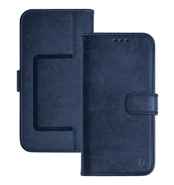Univerzální pouzdro FLEXIBOOK • Ideální řešení pro ty, kdo chtějí spojit praktickou ochranu, elegantní vzhled a univerzální použití • Díky pružnému gumovému uchycení bezpečně drží váš telefon na místě • Univerzální provedení – pasuje na většinu chytrých telefonů • Výřezy na fotoaparát – bez nutnosti vyndávat telefon • Elegantní „book“ design s magnetickým zavíráním • Vnitřní kapsy pro karty či drobnosti • Barva: modrá