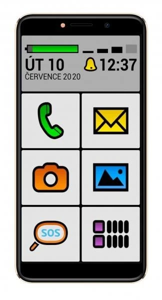 5,5" qHD-IPS (480x960) 18:9, Quadcore 64 bit, Cortex A53, RAM: 2GB, ROM: 32GB (MicroSD/HC/XC až 512 GB), foto zadní: 8.0 Mpix, foto přední: 2.0 Mpix, snímač otisků prstů, Dual SIM, LTE, GPS, WiFi, BT 4.2, 2500 mAh, Android™ 9