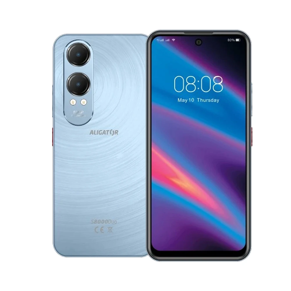 Mobilní telefon ALIGATOR S8000 Duo nabízí skvělý poměr ceny a výkonu. Velký 6,8" HD+ displej s obnovovací frekvencí 120 Hz poskytuje plynulé zobrazení a velmi dobrou čitelnost i na denním světle. Díky kombinaci 4 GB operační paměti a 4 GB virtuální RAM zvládá telefon multitasking bez zpomalení, což oceníte při běžné práci i při hraní her. Vestavěné 128GB úložiště poskytuje dostatek místa pro aplikace, fotografie i videa, přičemž ho lze snadno rozšířit pomocí MicroSD karty až o 1 TB. Nechybí ani technologie NFC pro pohodlné bezkontaktní platby a moderní způsob připojování zařízení.