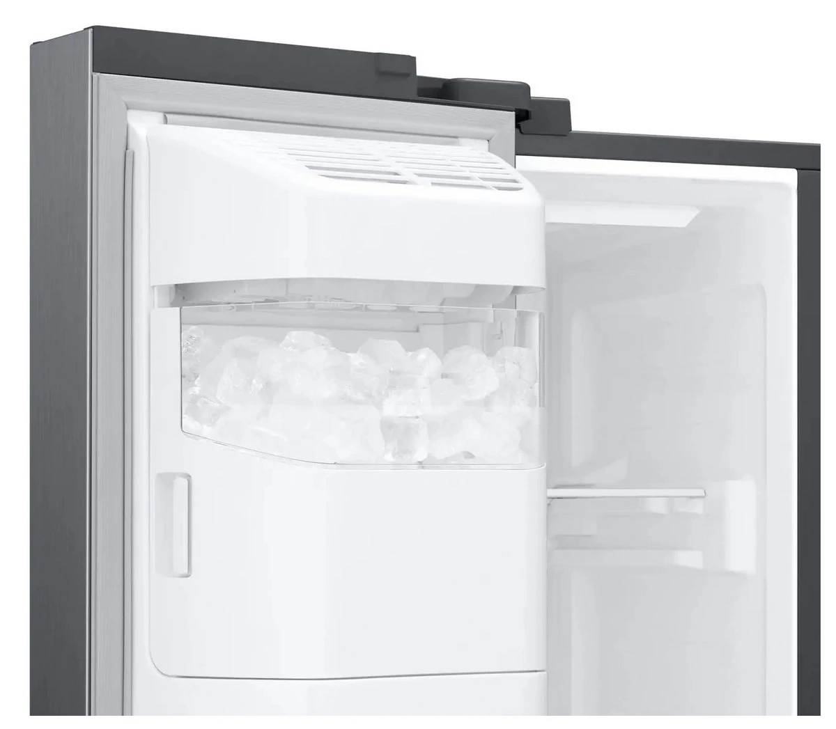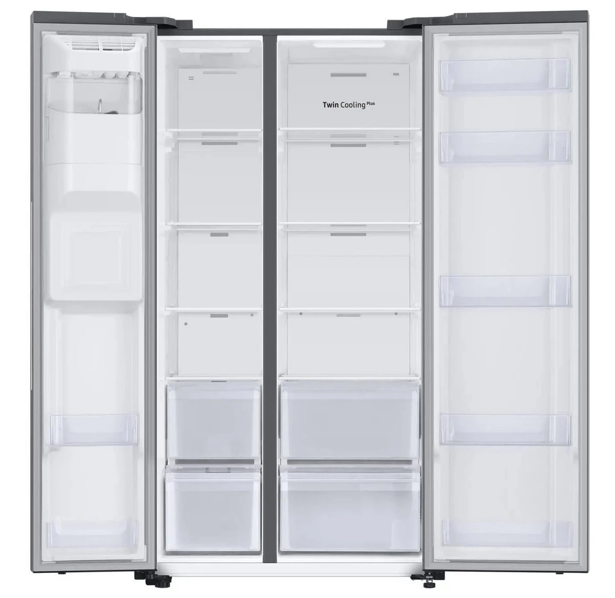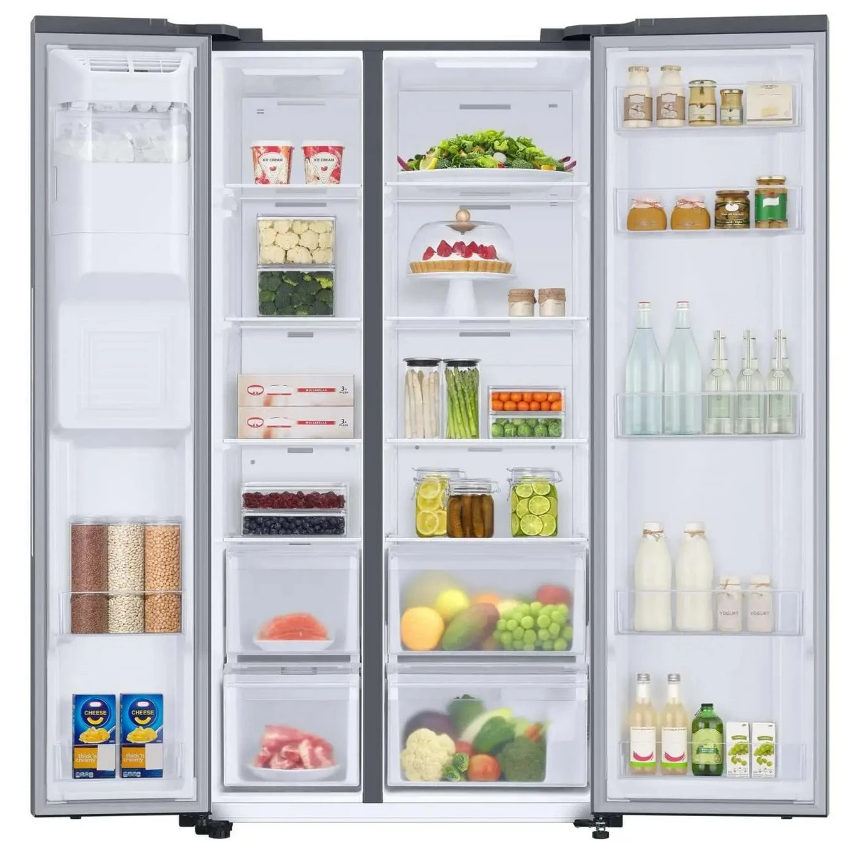 Americká lednice • provedení Side-by-Side • en. třída F • objem 634 l (chladnička 409 l; mrazák 225 l) • 10letá záruka na kompresor • systém True No Frost • Twin Cooling Plus chlazení • flexibilní uložiště se systémem Smart Conversion • rychlé funkce Power Cool a Power Freeze • technologie SpaceMax • dávkovač vody a ledu ve dveřích • režim dovolená • LED osvětlení • klimatická třída: SN, N, ST, T • hlučnost: 36 dB • barva: nerez • výška 178 cm