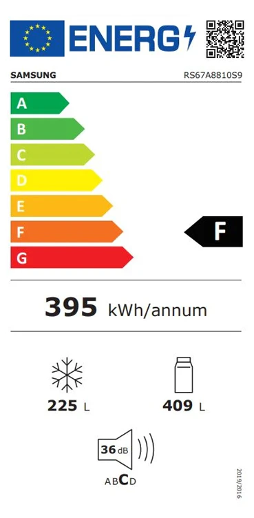 Vysoký standard výrobních procesů, důraz na špičkovou kvalitu a dlouhou životnost lednice Samsung RS67A8810S9/EF stvrzuje výrobce neobyčejnou 10letou zárukou na invertorový kompresor. Ten propůjčuje spotřebiči výjimečně tichý chod, prvotřídní energetickou úspornost a současně i inteligentní provoz, neboť automaticky reguluje svoji rychlost podle potřeb chlazení. Dle nových energetických kritérií spadá Side-by-Side americká lednice Samsung RS67A8810S9/EF do en. třídy F.