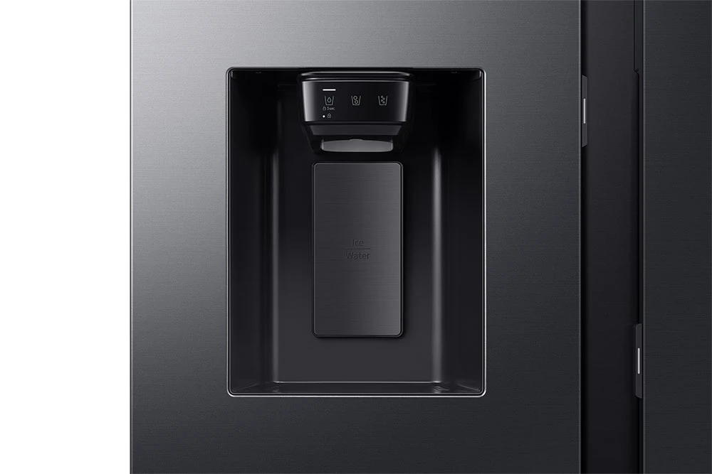 Americká chladnička • energetická třída E • kapacita 614 l (389 / 220) • Twin Cooling • Metal Cooling • 21,5" FamilyHub displej • automatické otevírání dveří • chytrá konverze • Wi-Fi • AI funkce • dispenzor vody a ledu • připojení na vodu • hlučnost 34 dBA • spotřeba 352 kWh • vnitřní kamera • možnost hlasového ovládání přes Bixby (pouze anglicky) • 13 kg/24h mrazící kapacita • funkce No frost • funkce rychlého chlazení a mrazení • 178 cm výška • barva: černá