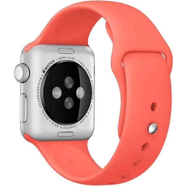 Apple 38mm meruňkový sportovní řemínek. Vlastní vysoce funkční fluoroelastomer s kolíčkovým zapínáním.