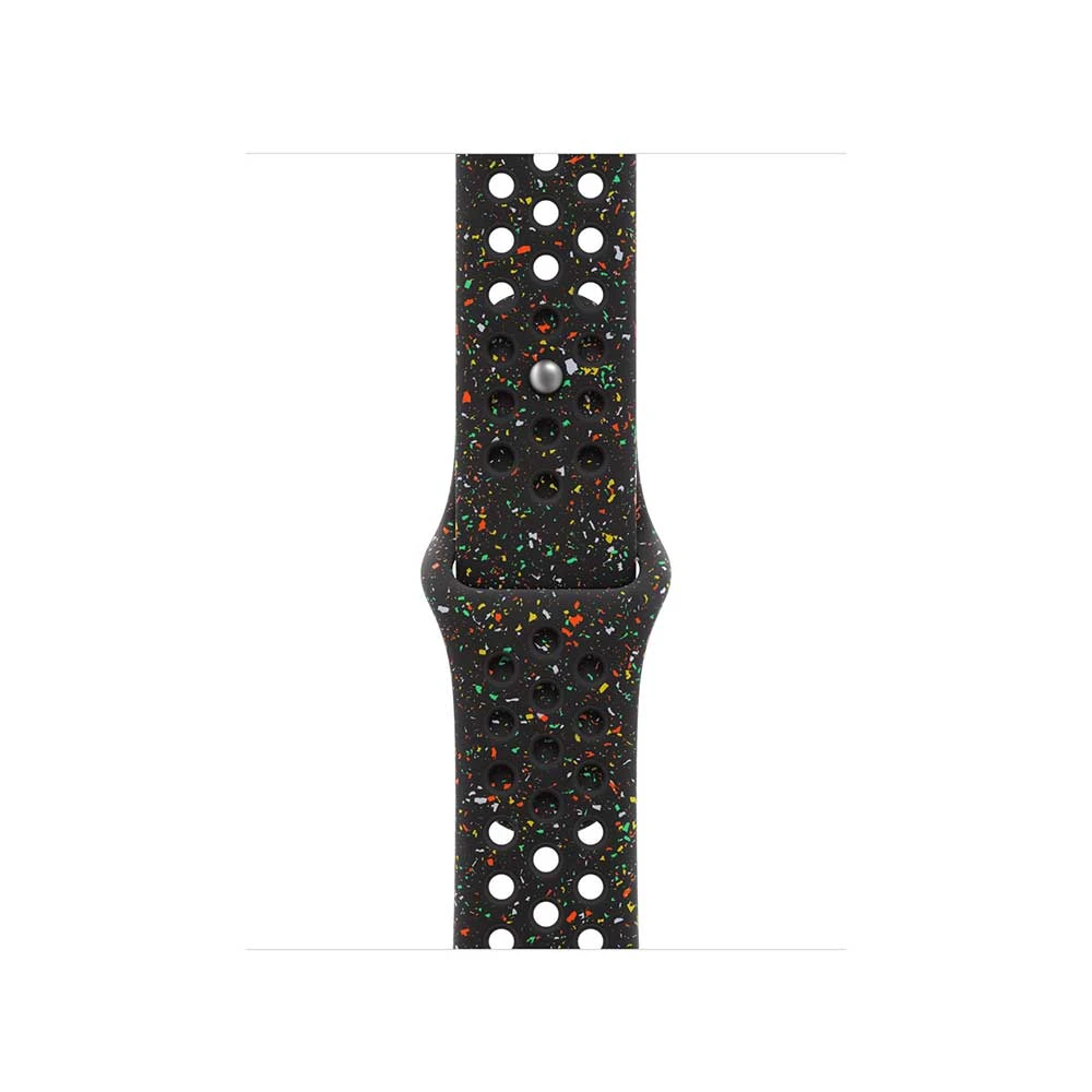 Sportovní řemínek Nike • odolný, pevný a poddajný řemínek • pohodlně sedí na ruce • obsahuje barevné vločky, které tvoří náhodné vzory • zapínání na hliníkový kolíček s matným povrchem s vygravírovaným logen Nike • velikost pouzdra: 42mm • velikost řemínku S/M (na zápěstí s obvodem 130 - 180mm) • barva: Midnight Black