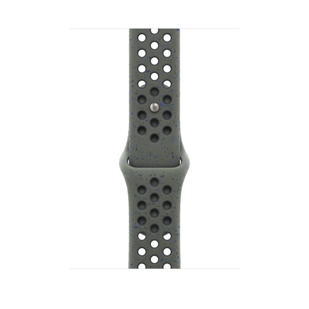 Sportovní řemínek Nike má vylisované otvory pro větší vzdušnost, je odolný, pevný a přitom krásně poddajný. Obsahuje barevné vločky vytvářející náhodné vzory, takže každý řemínek je originál. Jeho hladký, hutný materiál se elegantně ovine kolem zápěstí a příjemně sedí. A nově se zapíná na hliníkový kolíček s matným povrchem. Řemínek obsahuje minimálně 32 % recyklovaného fluoroelastomeru, přičemž obsah recyklovaného fluoroelastomeru v každé vločce je minimálně 66 %.