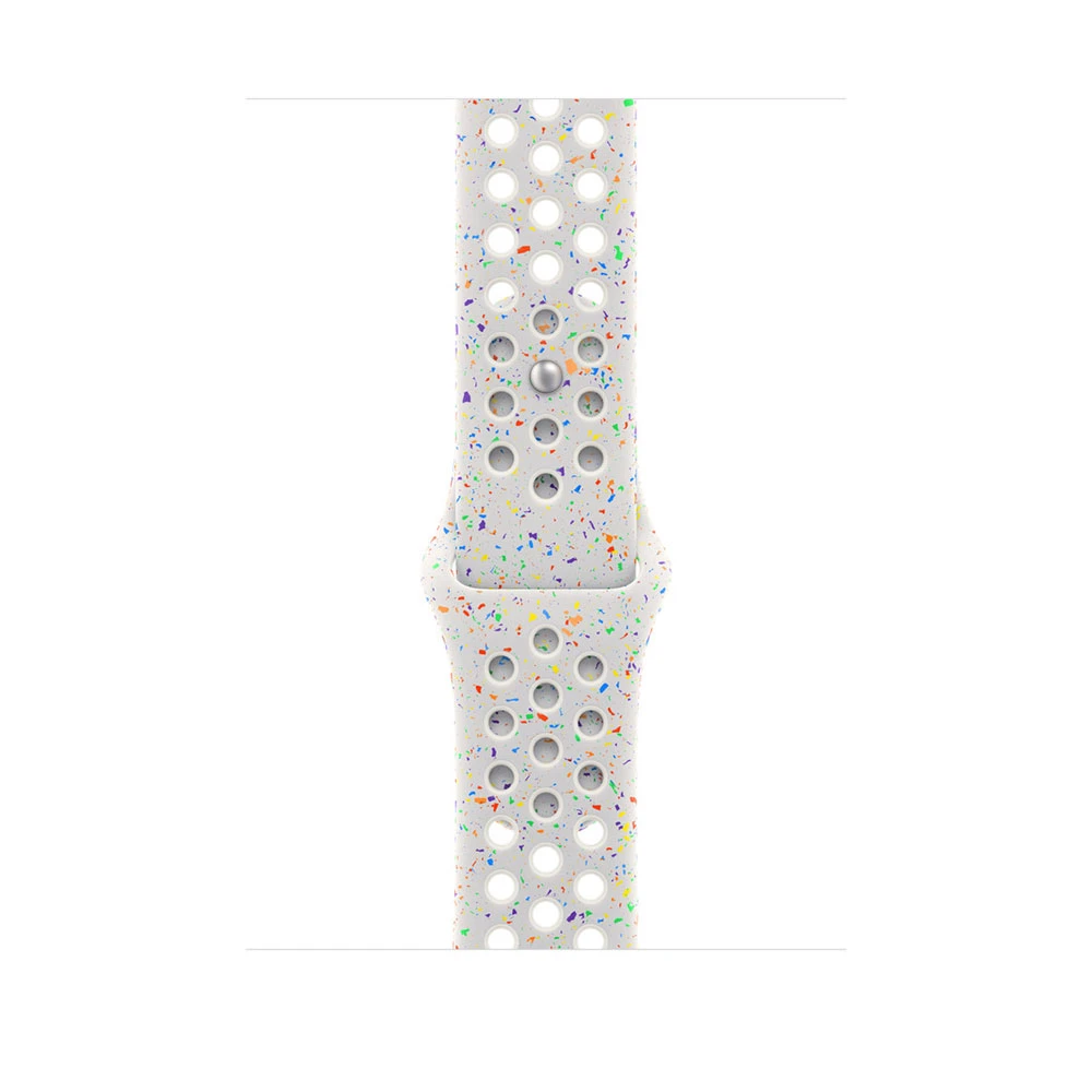 Tenhle sportovní řemínek Nike má vylisované otvory pro větší vzdušnost, je odolný, pevný a přitom krásně poddajný • Obsahuje barevné vločky vytvářející náhodné vzory, takže každý řemínek je originál • Jeho hladký, hutný materiál se elegantně ovine kolem zápěstí a příjemně sedí A nově se zapíná na hliníkový kolíček s matným povrchem.