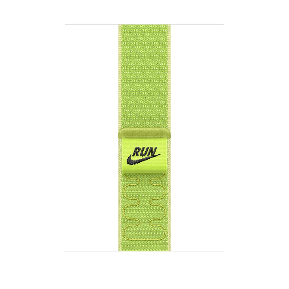 Provlékací sportovní řemínek Nike • design s reflexními vlákny • zapínání na suchý zip s tkaným poutkem s logem Nike Run • prodyšný materiál • velikost pouzdra: 46 mm • barva: Volt Splash