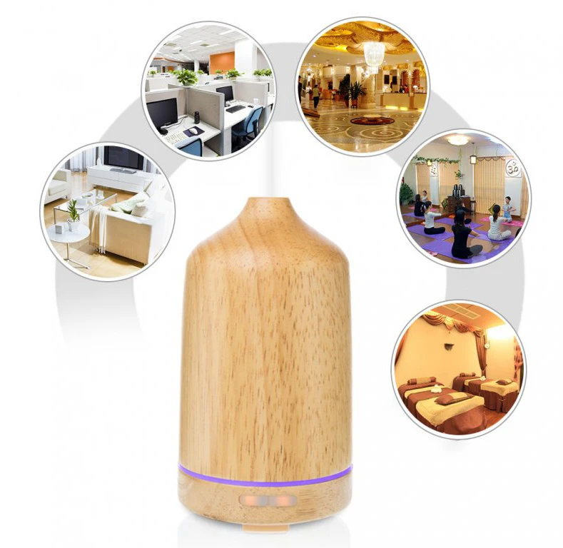 Aroma difuzér z přírodního bambusového dřeva • objem nádoby 100 ml • 7 barev podsvícení • LED světlo • doba provozu 4 hodiny • nastavení podsvícení a časování vypnutí a zapnutí • nastavitelný výstup mlhy • tichý provoz • Certifikace (ISO9001 CE ROHS FCC) • rozměry: 158 cm (výška) x 92 cm (průměr základny) • barva: světlé dřevo