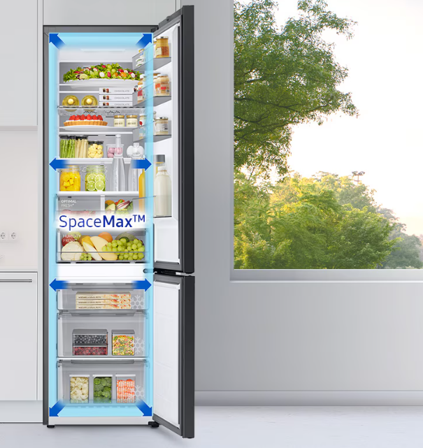 Uskladněte více jídla v extra velké 344litrové* chladničce se zachováním standardní 600mm hloubky, která se skvěle sladí s vašimi stávajícími kuchyňskými skříňkami. Unikátní technologie SpaceMax používá speciální izolační vrstvu, díky které jsou stěny spotřebiče mnohem tenčí. Vytváří tak více úložného prostoru, aniž by vyčnívala z pracovní plochy.
