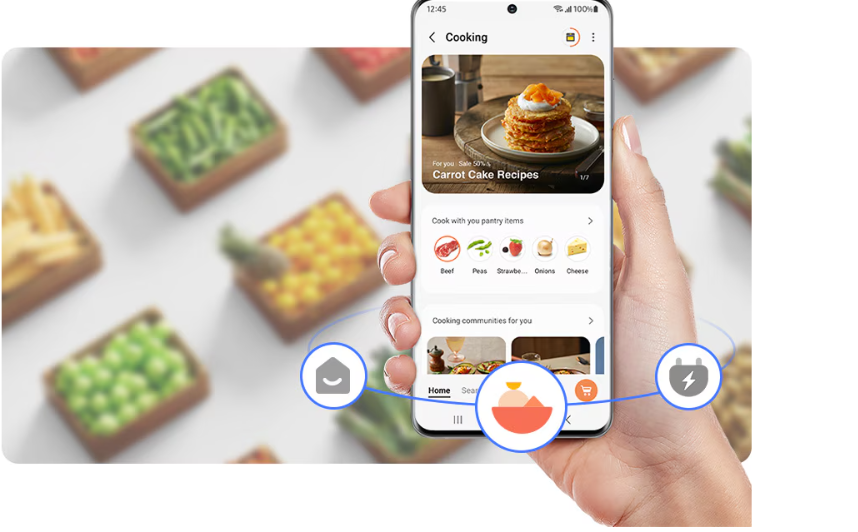 Lepší přehled o potravinách - chytřejší příprava jídel i nákupy. SmartThings Food aplikace umožňuje vytvářet seznam potravin v chladničce a hlídat data spotřeby - můžete tak kdykoliv zkontrolovat vaše zásoby.