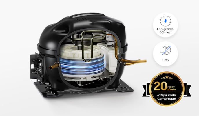 Invertorový AI kompresor s vylepšenou konstrukcí pracuje efektivněji – díky 4,1× vyšší setrvačnosti* a tichému provozu šetří energii i vaše nervy. Umělá inteligence vyhodnocuje, jak lednici používáte, a podle toho optimalizuje chod. A s 20letou zárukou *** na kompresor máte o jednu starost míň.