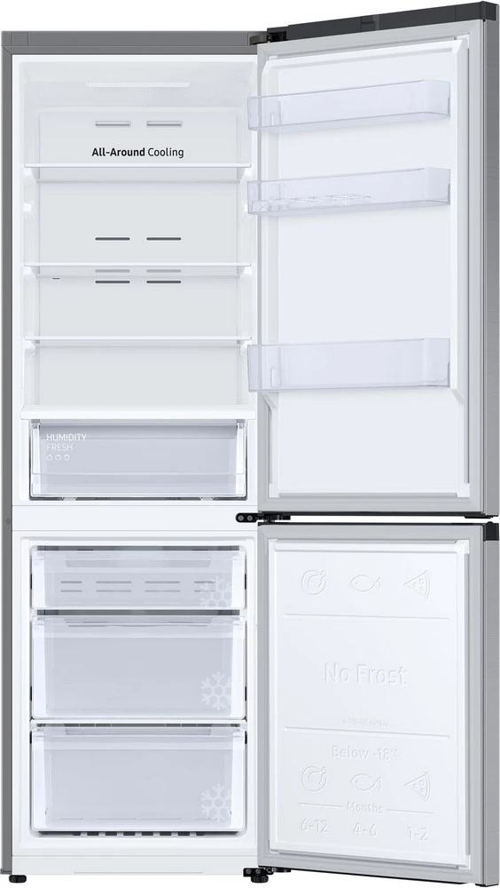 Kombinovaná lednice Samsung RB34C600DSA/EF pracuje pracuje s moderní technologií True No Frost, která zásluhou promyšleného chlazení účinně zabraňuje tvorbě námrazy v celém mrazicím prostoru a garantuje stejnoměrnou distribuci optimální teploty do každého koutu. Neustálému sledování konstantní teploty a vlhkosti napomáhá i důmyslný systém All-Around Cooling, který efektivně prodlužuje čerstvost vašich potravin a brání nežádoucímu mísení pachů a aromat. K uložení každého kousku vždy najdete vhodné místo, poněvadž chladnička Samsung RB34C600DSA/EF pracuje skýtá příjemný celkový objem 344 l (230 l lednice, 114 l mrazák).
