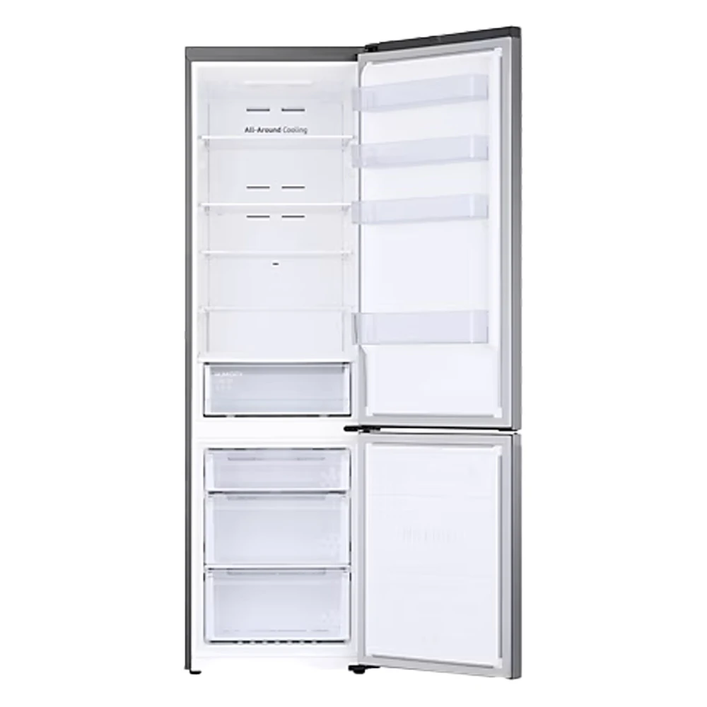 Kombinovaná chladnička Samsung RB38C600CS9/EF zaujme velkým celkovým objemem 390 litrů, za který vděčí mimo jiné chytrému řešení SpaceMax. Díky inovativní, účinné izolaci může mít tenčí stěny, takže zvenčí je standardně velká, ale uvnitř prostornější. Své jídlo si můžete přehledně uspořádat, protože interiér je prakticky řešený – nabízí například větší poličku ve dvířkách, jež pojme až 2litrové lahve. Chladnička je velmi elegantní, takže zapadne do vaší kuchyně, a potěší praktickými vychytávkami, jako je hladká zadní strana, která se snadno čistí, nebo zapuštěnými dvířky, jež umožní otevření o 90° i v těsném prostoru, protože nepřečnívají.
