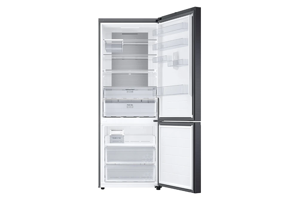 Lednice s mrazákem dole • objem: 538 l (chladnička 370 l, mrazák 168 l) • en. třída: A • digitální invertorový kompresor s 10letou zárukou • Wi-Fi • SmartThings • True No Frost • SpaceMax • systémy Twin Cooling a All-Around Cooling • kovová chladicí deska Metal Cooling • funkce Power Cool/Power Freeze • AI Energy mód • výrobník ledu Twist Ice Maker • nastavitelné otevírání dvířek • klimatická třída: SN, N, ST, T • hlučnost: 34 dB • barva: černá