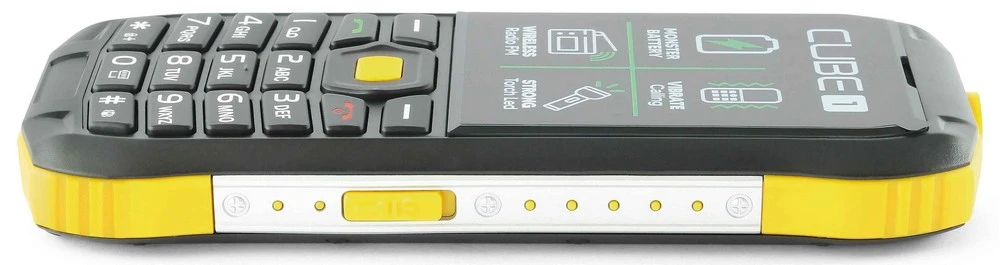 Tlačítkový mobilní telefon s 2,4" displejem o rozlišení 240 × 320 px • procesor Spreadtrum SC6531E • 32 MB RAM • 32 MB vnitřní uložiště (microSD až 8 GB) • 1,3MPx zadní fotoaparát • hlasitý reproduktor Kbox • kalendář • kalkulačka • budík • rádio • svítilna • robustní odolná konstrukce • Bluetooth • Dual SIM • drátová funkce powerbanky • 2 500mAh baterie s ohromující výdrží • 2G • GSM • rozměry: 12,6 × 5,8 × 1,5 cm (v × š × h) • ultra nízká hmotnost 109 g • barva: žlutá