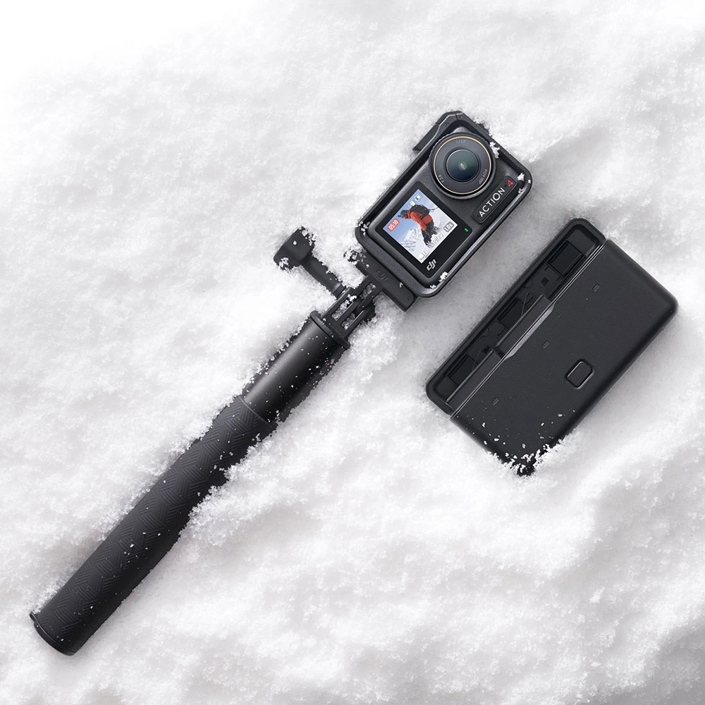 Kamera Osmo Action 4, 2x baterie, ochranný rám, 2x rychloupínací adaptér, adhezivní základna, 2x zajišťovací šroub, USB-C kabel, gumová krytka obj., multifunkční nabíjecí pouzdro, teleskopická tyč (1,5 m)