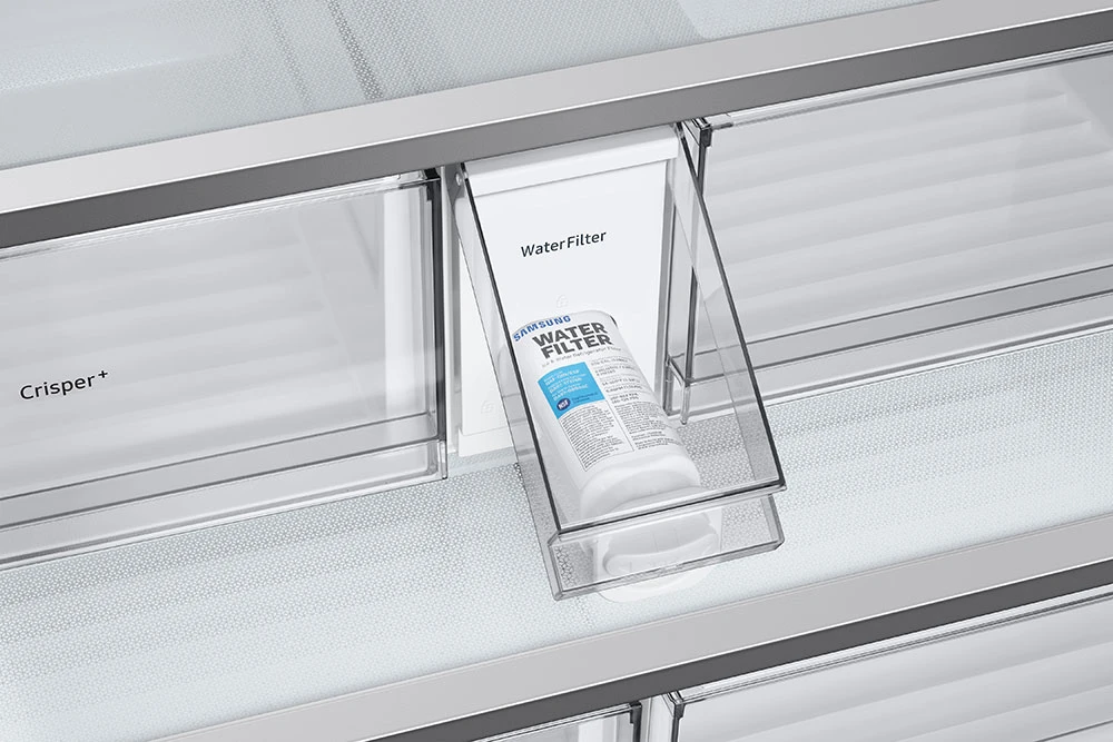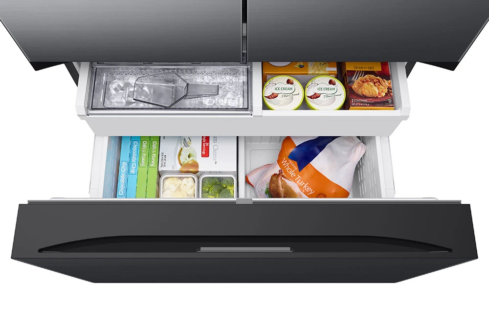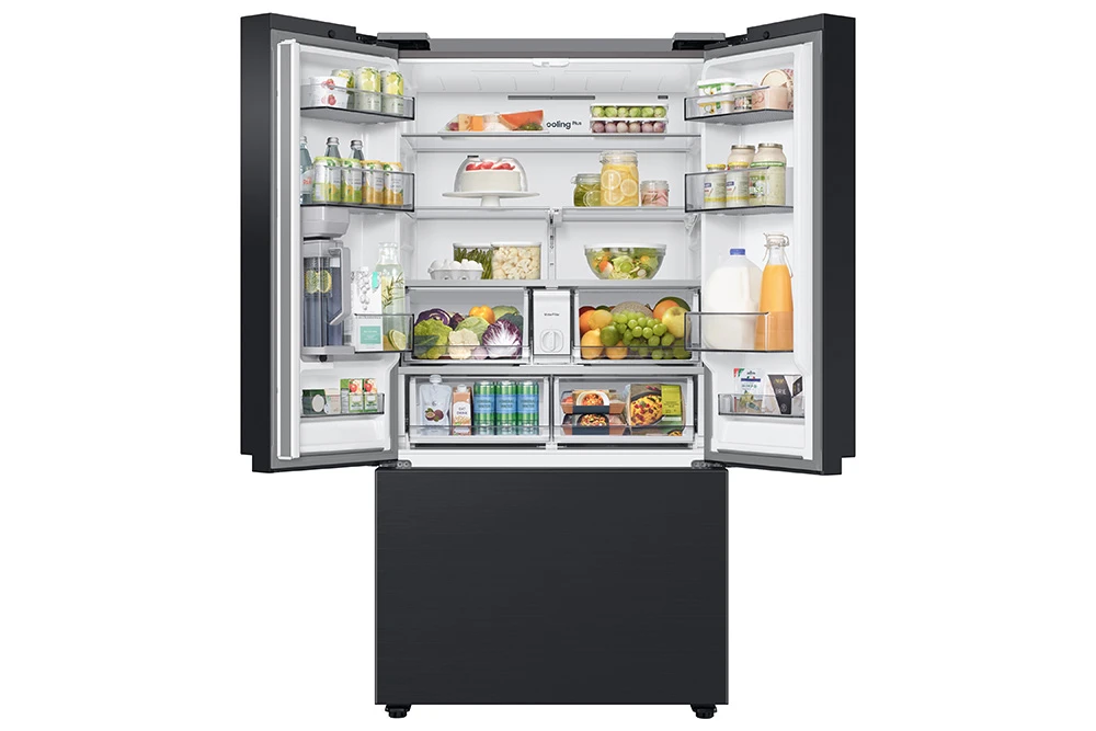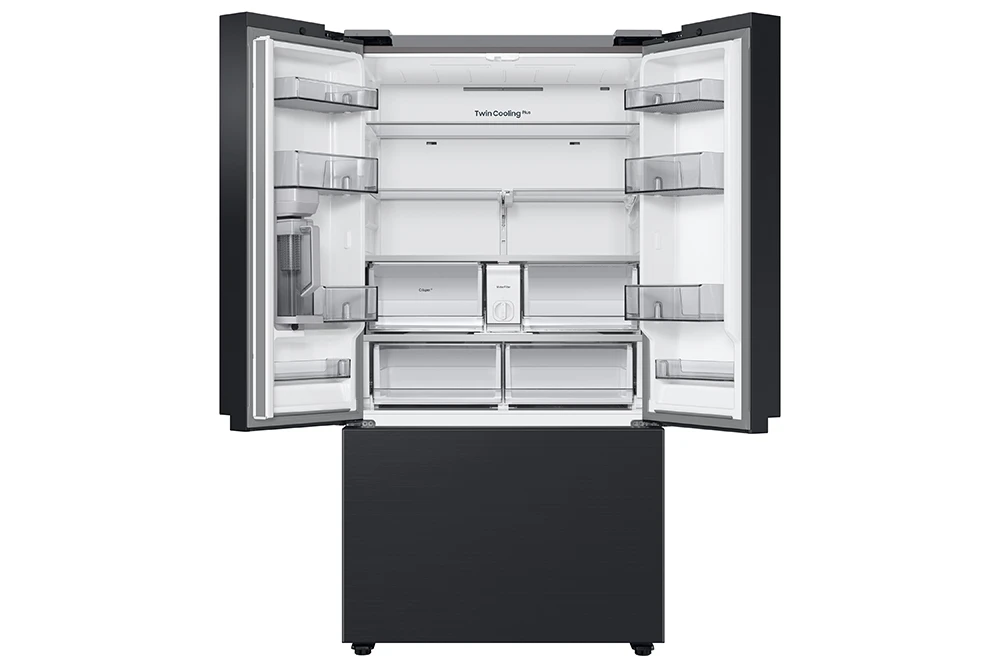 Energetická třída E, kapacita 674 l (487 / 187), Twin Cooling, No Frost, funkce rychlé chlazení a mrazení, 4 police chladničky, 2 zásuvky mrazničky, Automatické plnění konvice na vodu, připojení na vodu, 38 dBAm, SMART, WiFi, AI, 178 cm výška