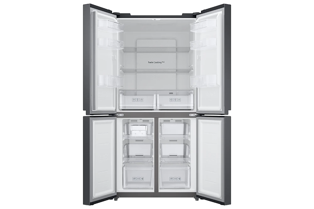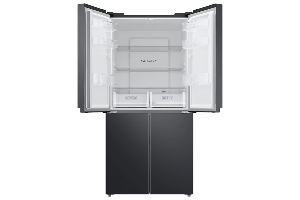 Energetická třída E, Kapacita 488 L (329 / 159), Twin Cooling Plus, No Frost, Funkce rychlé chlazení a mrazení, Deodorizér, 4 police a 2 přihrádky mrazáku, 3 police chladničky, hlučnost 41 dBA, mrazící kapacita 12 kg/24 hodin, Twist ice maker, spotřeba 298 kWh/ročně, SMART, WiFi, AI, SmartThings, výška 179 cm, barva černá