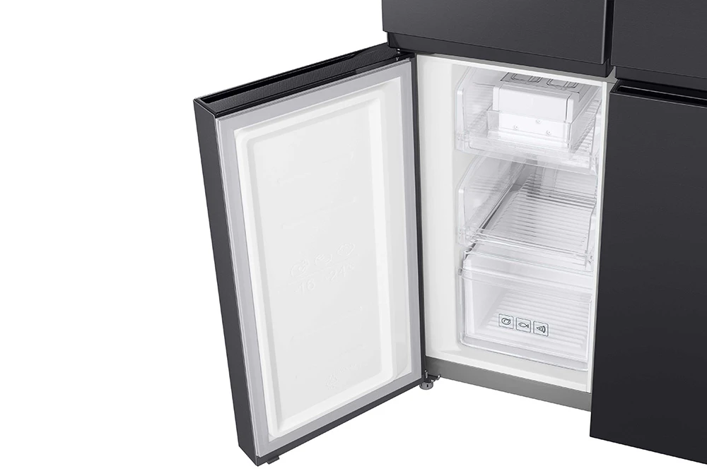 Americká chladnička • en. třída E • objem 488 l (chladnička 329 l; mrazák 159 l) • True No Frost • Twin Cooling Plus • Dispenzor vody a ledu • 12kg/24h mrazící výkon • deodorizer • 41 dBA hlučnost • funkce rychlé chlazení a mrazení • SMART
