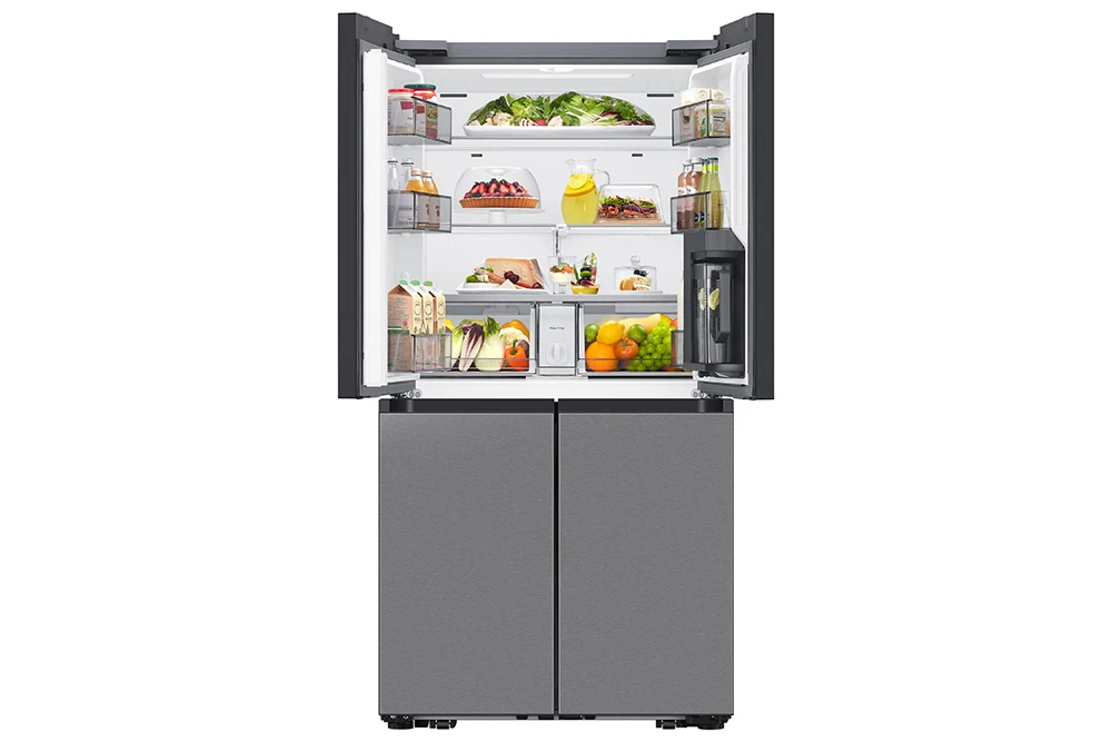 Energetická třída E, Kapacita 648 L (402 / 246), Mono Cooling, No Frost, Funkce rychlé chlazení a mrazení, Automaticky plnící nádoba na vodu, Připojení na vodu, displej 2,25" LCD, 4 police a 2 přihrádky mrazáku, 4 police chladničky, hlučnost 35 dBA, mrazící kapacita 12 kg/24 hodin, Dual Ice Maker, spotřeba 351 kWh/ročně, SMART, WiFi, AI, SmartThings aplikace, výška 185 cm, barva stříbrná/nerez