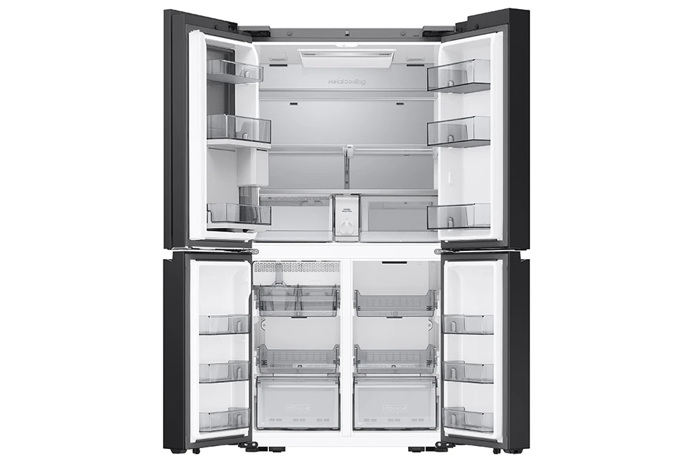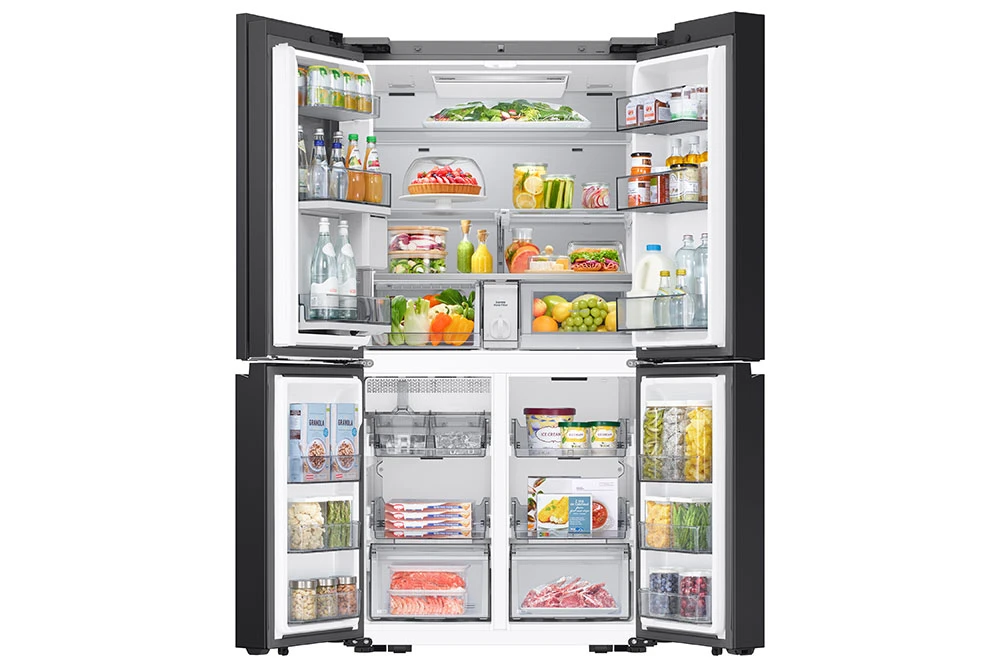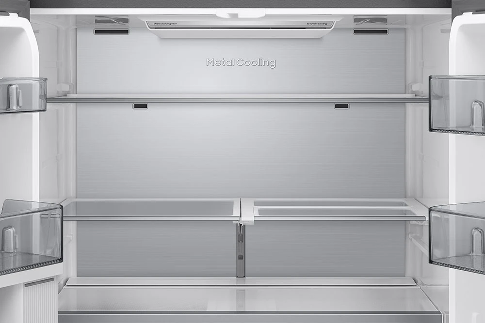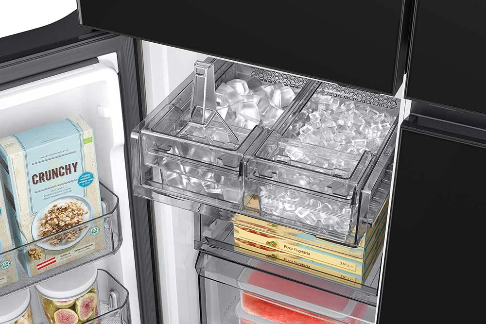 Energetická třída E, Kapacita 654 l (399 / 255), Hybrid Cooling, Metal Cooling, No Frost, 9" AI Home externí displej, Automatické otevírání dveří, nápojové centrum - napojení na vodu, dual auto výrobník ledu, UV deodorizer, funkce rychlé chlazení a mrazení, mrazící kapacita 12 kg/24h, spotřeba 363 kWh ročně, hlučnost 35 dBA, WiFi, AI, kamera, ovládání hlasem (AJ), výška 185 cm, barva černá