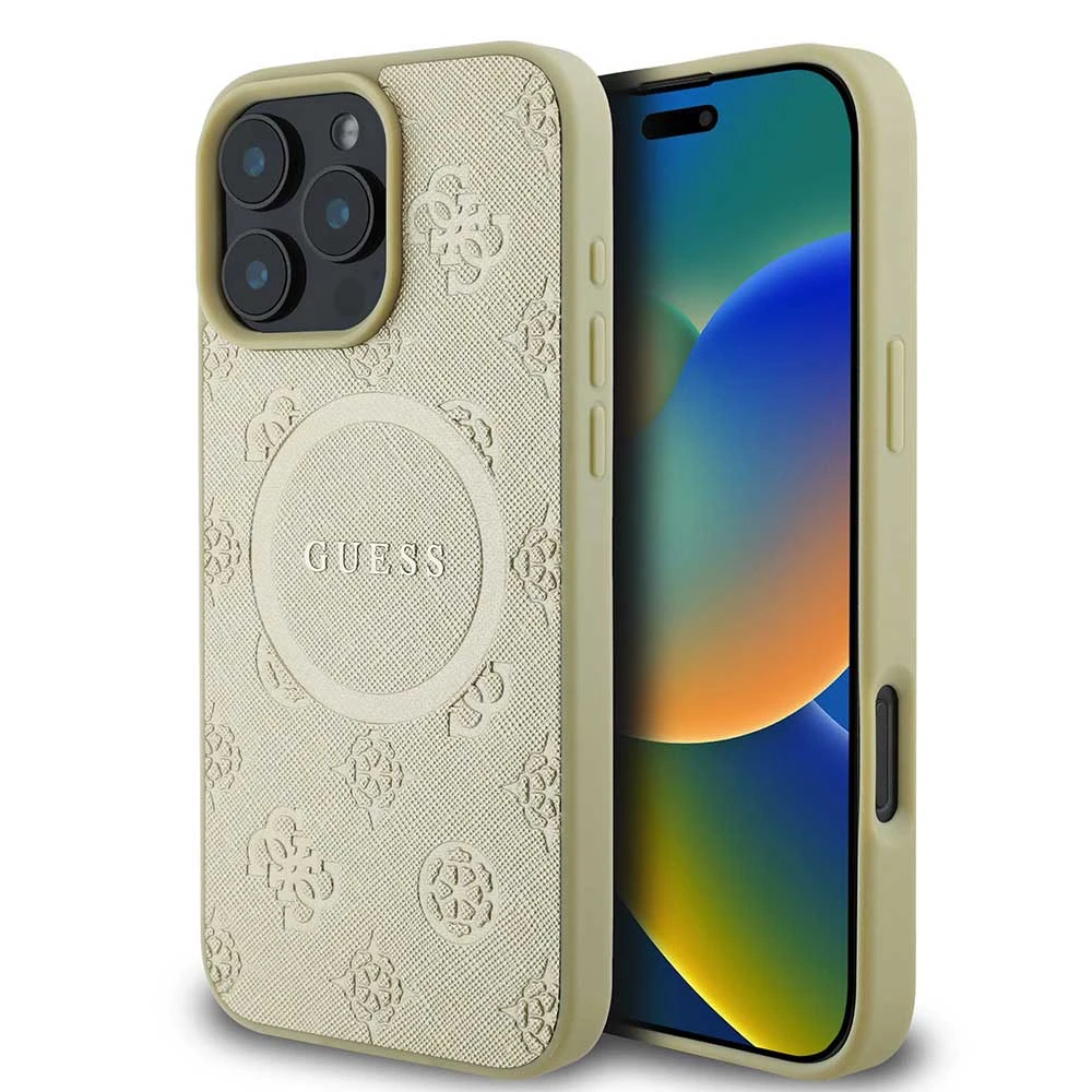 Guess Saffiano Peony MagSafe iPhone 16 Pro Gold