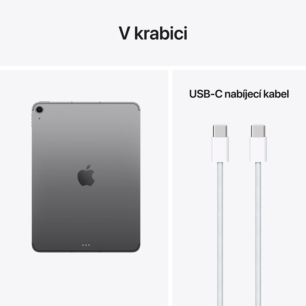 iPad Air 11" 2026 • 11" Liquid Retina displej s LED podsvícením (2 360 × 1 640 px, 500 nitů, True Tone, antireflexní) • čip Apple M4 – 8jádrové CPU, 9jádrové GPU & 16jádrový Neural Engine • 12GB RAM • 256GB úložiště • zadní 12MPx širokoúhlý fotoaparát (f/1,8) • přední 12MPx ultraširokoúhlá kamera (f/2,0) • stereo reproduktory • 2 mikrofony • Touch ID • 5G/LTE • Wi‑Fi 7 • Bluetooth 6.0 • GPS • USB‑C konektor • až 9 h sledování videí na jedno nabití • eSIM • iPadOS 26 • barva: šedá