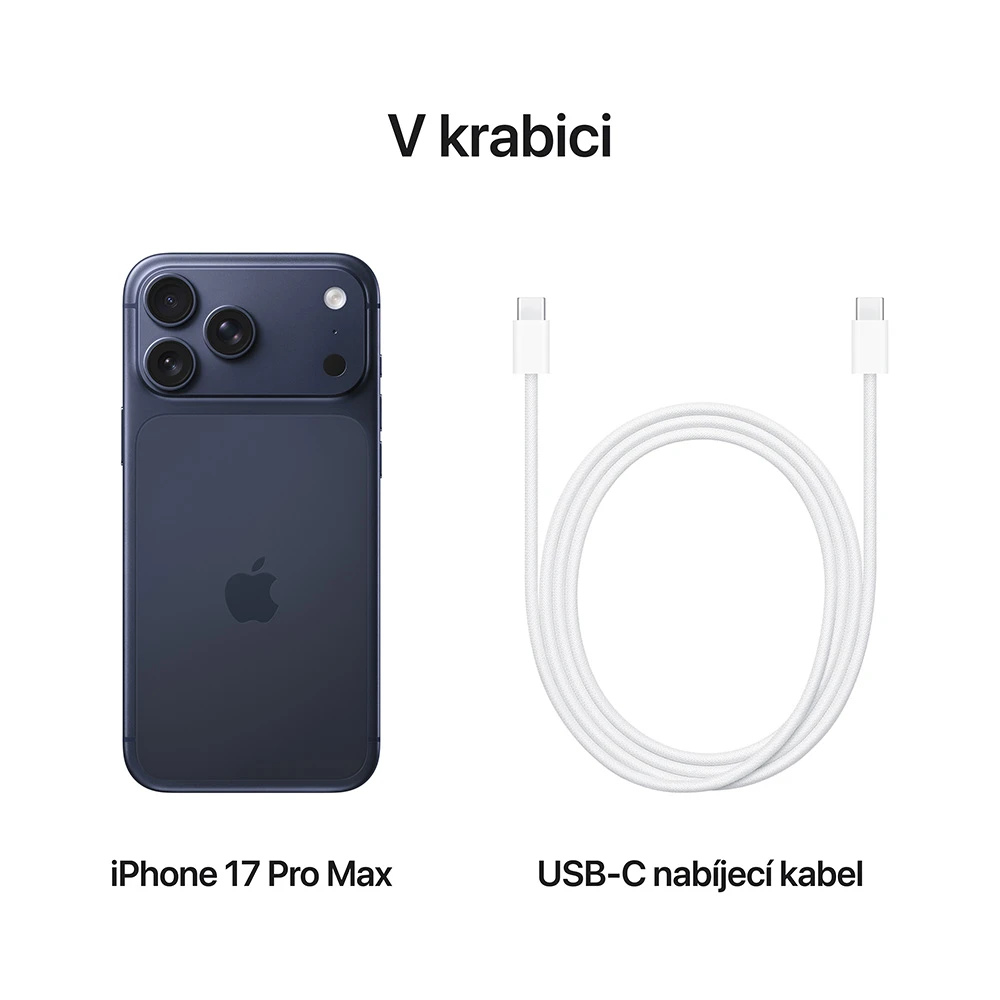 • iPhone 17 Pro Max• USB‑C nabíjecí kabel (1m) • Dokumentace •