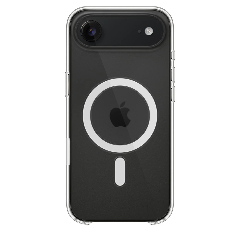 Ultratenký originální průhledný kryt nechává vyniknout mimořádně tenký design iPhonu Air • Zadní panel s tloušťkou 0,9 mm je zesílený polykarbonátovým rámečkem • Jemně zakalený vnitřek kontrastuje s vysoce lesklým vnějším povrchem • Tlačítka jsou nově navržená s důrazem na přesnou haptickou i zvukovou odezvu • Tenký a lehký kryt s MagSafe na iPhone Air je důkladně optimalizovaný tak, aby iPhone chránil před poškrábáním i při pádu • Kryt je dokonale kompatibilní s ovladačem fotoaparátu