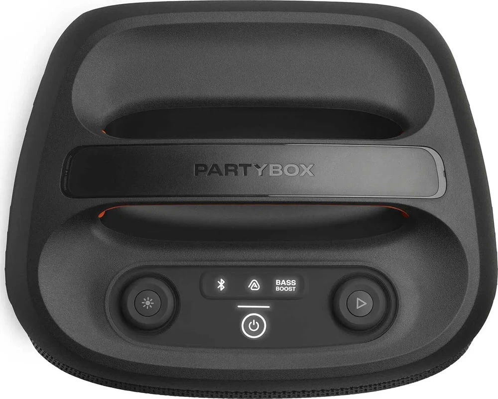 Přenosný párty reproduktor • JBL Pro Sound s AI Sound Boost • 100 W RMS výkon • 1× 5,25″ woofer + 2× 0,75″ dome tweeters • frekvenční rozsah 40 Hz – 20 kHz • až 15 hodin přehrávání • BT 5.4 • Multi-speaker připojení přes Auracast™ • vstupy pro mikrofon a kytaru + Aux-in (3,5 mm) + USB-C audio/power-out • dynamická světelná show synchronizovaná s hudbou • ovládání přes JBL PartyBox App • IPX4 odolnost proti stříkající vodě • kompaktní rozměry a praktické držadlo • recyklovaný plast