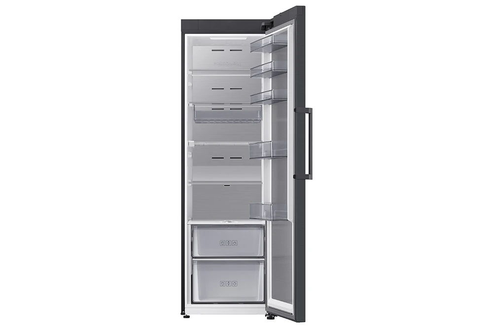 Jednodveřová chladnička • energetická třída E • Kapacita 387 L • All Around Cooling • Metal Cooling Duct • 5 polic • 5 přihrádek ve dveřích • Multitray • 2 potravinové boxy • Funkce rychlé chlazení • 35 dBA • spotřeba 120 kWh/ročně • WiFi