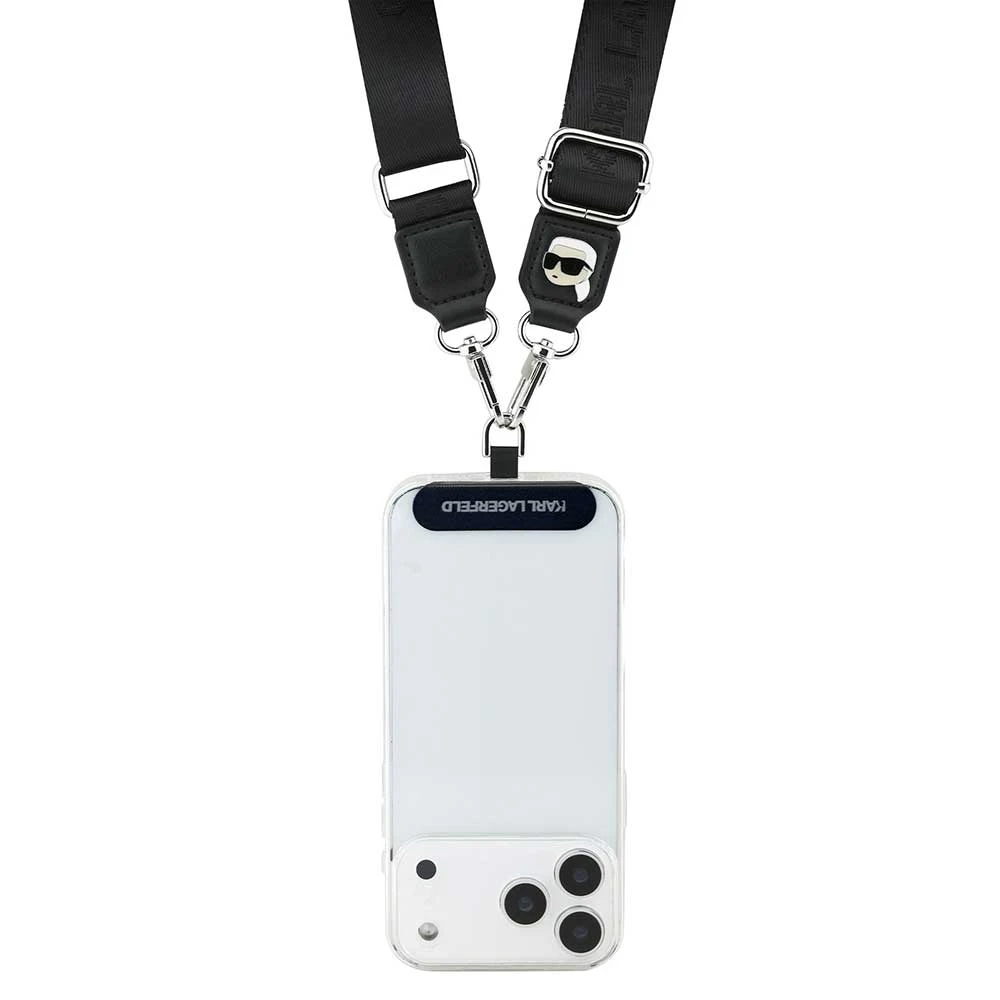 Originál Karl Lagerfeld s motivem Karl Patch • Crossbody popruh s odnímatelným a nastavitelným nylonovým tether patchem • Zdoben opakovaným logem Karl Lagerfeld • Praktické karabiny umožňují odepnout popruh bez sundání zadního krytu telefonu • Univerzální uchycení vhodné pro všechny značky chytrých telefonů • Nastavitelná délka popruhu až 150 cm pro pohodlné nošení přes rameno nebo kolem krku • Odolný a lehký nylon zajišťuje dlouhou životnost a komfort při používání