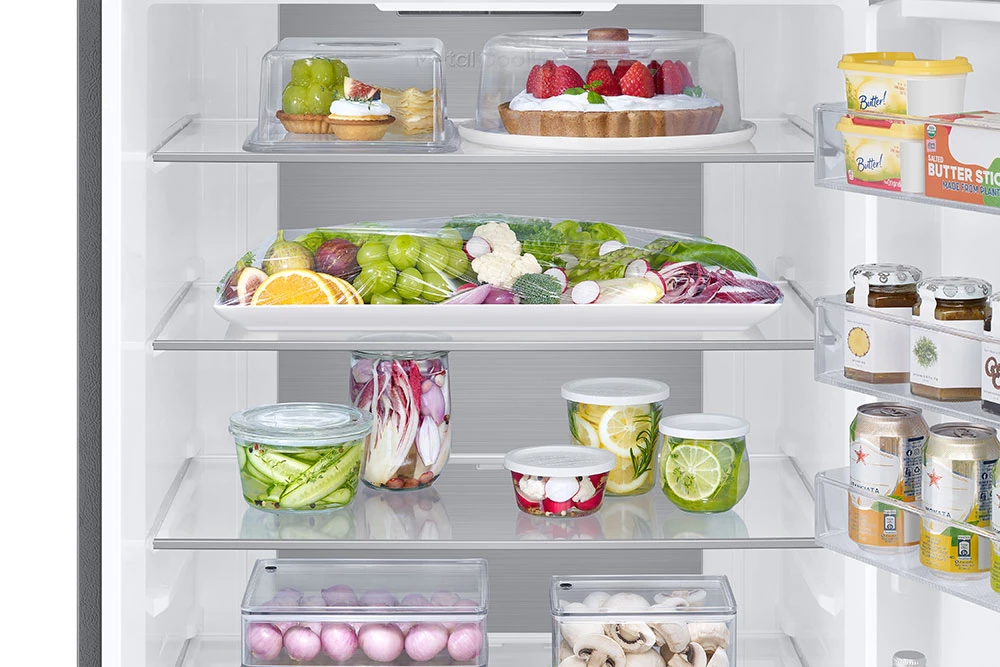 Kombinovaná chladnička Samsung s Wifi • energetická třída D (roční spotřeba energie 249 kWh) • celkový objem 538 l (370 / 168) • digitální invertorový kompresor s 20letou zárukou výrobce • pokročilé chlazení All Around Cooling • systém Metal Cooling • beznámrazové řešení True No Frost • funkce pro rychlé chlazení a mrazení • hlučnost 35 dBAm • aplikace Samsung SmartThings • režim SmartThings AI Energy