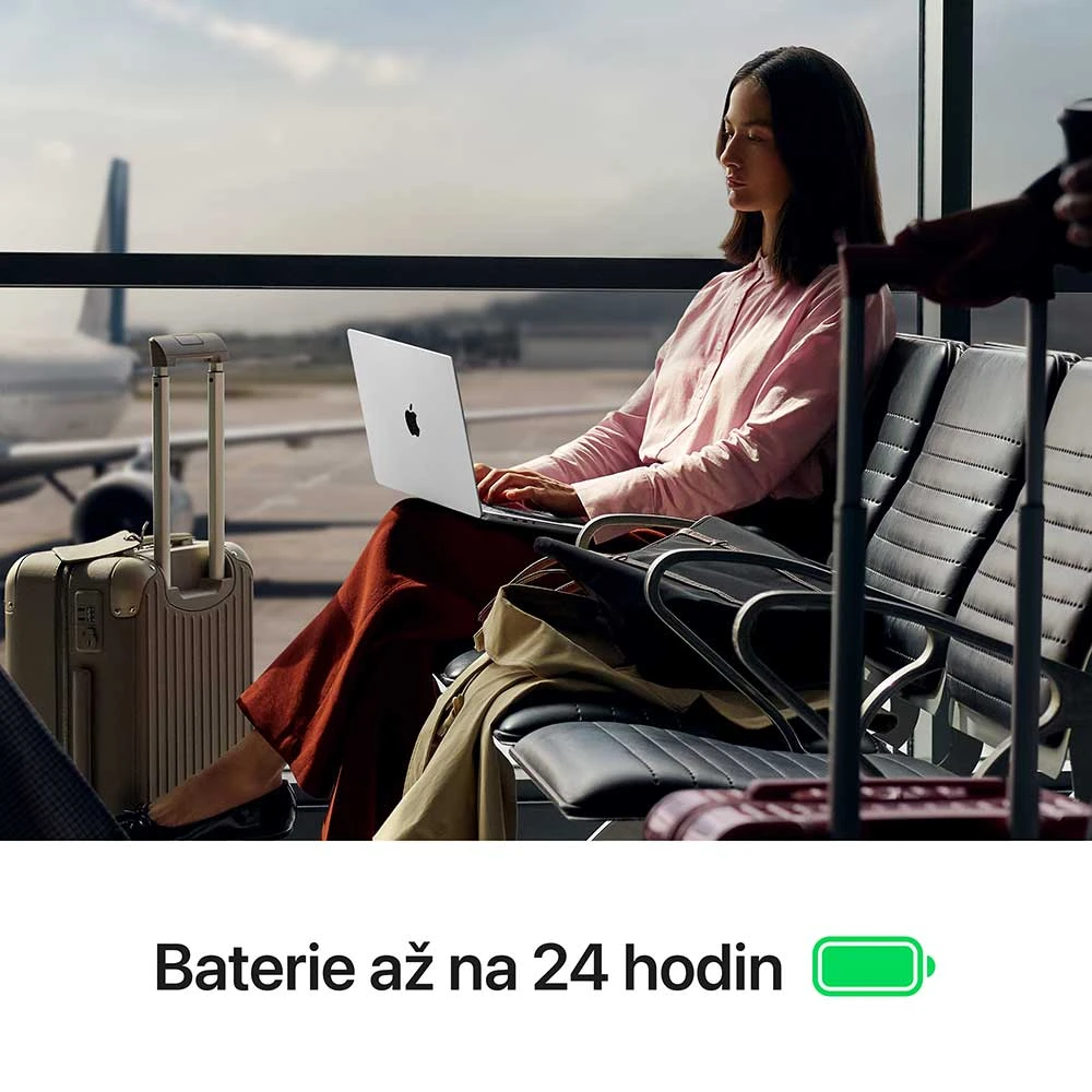 - 3× Thunderbolt 4 (USB-C) + 1× HDMI + 1× 3,5mm sluchátkový konektor + slot na microSDXC karty + MagSafe 3