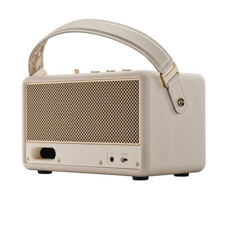 Aktivní přenosný reproduktor s luxusním stereo zvukem, bass reflexem a podporou kodeku aptX • 360° zvuk • celkový výkon 50 W (30W zesilovač třídy D pro woofer; 2×10W zesilovač třídy D pro dvojici tweeterů) • 3.5mm vstup • Bluetooth 5.3 aptX • možnost ovládání hlasitosti, výšek a basů • krytí IP54 • až 50h výdrž na jedno nabití • praktické ucho na přenášení • kompatibilní s Android i iOS zařízeními • frekvenční rozsah 45-20 000 Hz • rozměry: 27,3 × 15 × 16,9 cm • hmotnost: 2,8 kg • barva: krémová