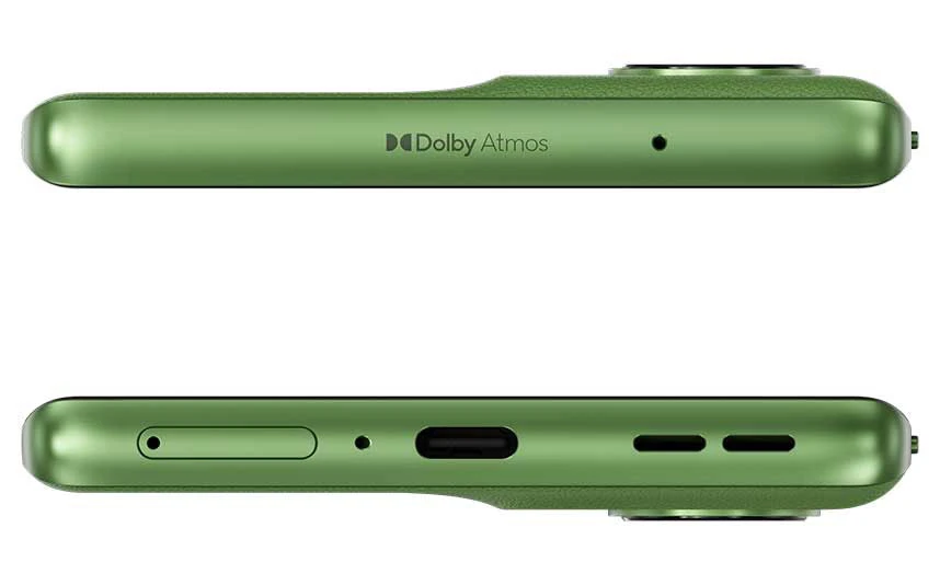 Mobilní telefon s 6,7" Full HD+ pOLED displejem (2 400 × 1 080 px, 20:9, 144 Hz, 10bit, až 1 600 nitů) • Snapdragon 7s Gen 2 • 8GB RAM • 128GB úložiště • dvojice zadních fotoaparátů – 50MPx (f/1,88) + 13MPx (f/2,2) • OIS • přední 32MPx kamera (f/2,45) • stereo reproduktory • Dolby Atmos • optická čtečka otisků • 5G • Wi-Fi • Bluetooth 5.2 • NFC • GPS • USB-C • Dual SIM/eSIM • IP68 • 5 000mAh baterie s 68W TurboPower nabíjením • Android 14