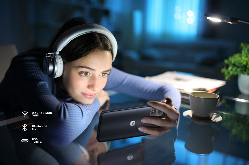 Každodenní cesty do práce či školy, procházky přírodou nebo jen toulky, při nichž nevnímáte proud času. To vše si žádá náležitou společnost a Motorola Moto E13 je i v tomto směru vybavená naprosto bravurně. Disponuje totiž oblíbeným portem 3.5mm jack (pro připojení klasických drátových sluchátek) a pyšní se rovněž pozoruhodným a krásně čistým 3D zvukem se signaturou Dolby Atmos, takže se z jejího doprovodu budete skvěle těšit každičký den. Moderní konektivita Bluetooth 5.0 současně garantuje výjimečně hladké bezdrátové propojení s ohromnou škálou zařízení.