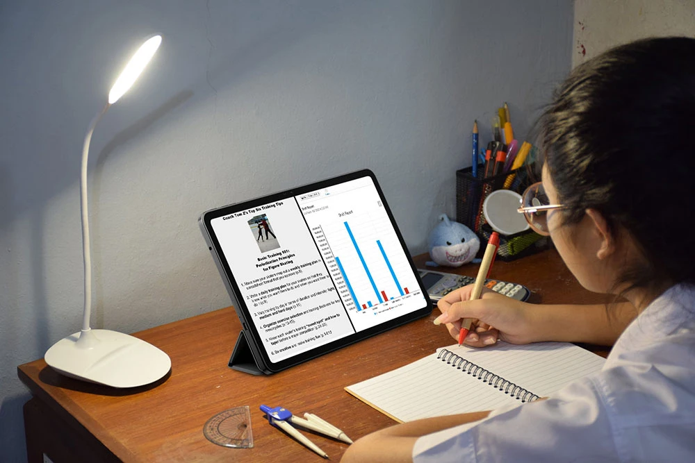 PAD 100 má úhlopříčku 12″, která je výborná na práci, procházení internetu i sledování filmů. IPS displej přichází s jemným rozlišením Full HD+, takže si obraz na velkém displeji užijete v náležité kvalitě. Navíc nabízí obrazovka řešení, jež šetří váš zrak – konkrétně například snížené vyzařování modrého světla. Vynikající je tloušťka jen 8 mm a stydět se tablet nemusí ani za hmotnost 610 gramů.