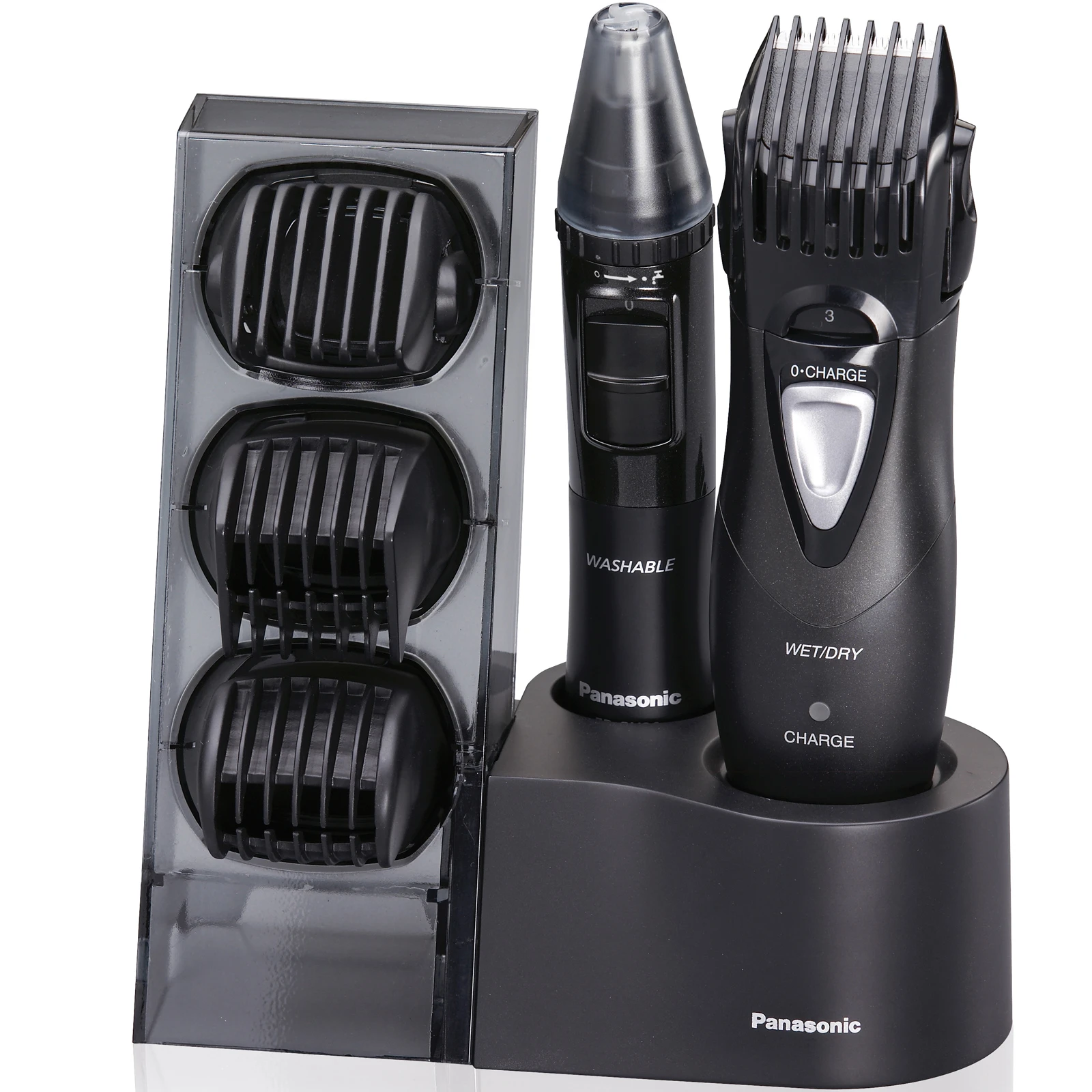 Multifunkční zastřihovač na celé tělo, WET/DRY - pro použití na sucho i na mokro s pěnou, omyvatelný - 100% voděodolný, 4 nástavce, zastřihovač vlasů - 0,5, 3-15 mm v 5 krocích, zastřihovač vousů 0,5, 3-15 mm v 5 krocích, nástavec na tělo, podpaží a intimní partie, zastřihovač ušních/nosních chloupků, břit z nerez oceli, nabíjecí stojánek.