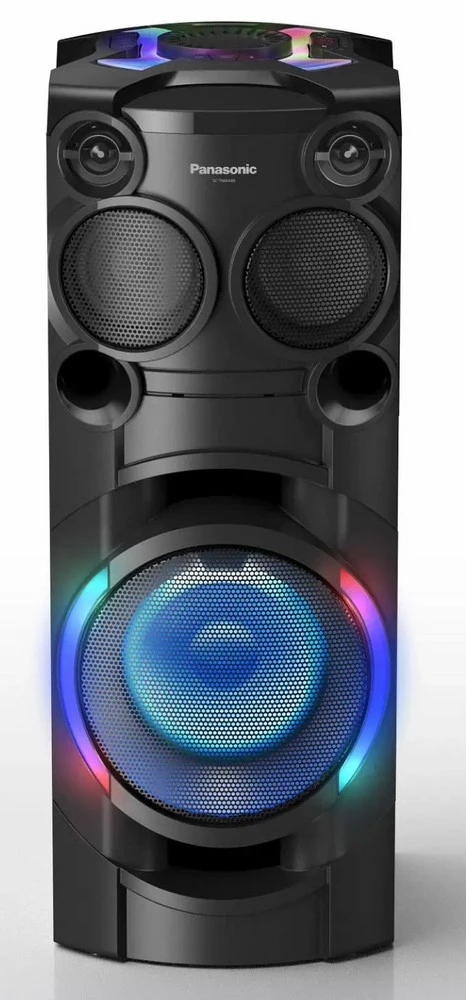 Výkonný párty reproduktor • kompaktní a odolné provedení • Bluetooth 5.0 • výkon 1200W • technologie AIRQUAKE BASS pro silné basy • možnost připojení 2 mikrofonů (režim karaoke) • párty osvětlení Max Dance Illumination • FM rádio, CD mechanika, USB port • AUX a 6,3 mm vstup • mobilní aplikace Panasonic MAX Juke • dálkové ovládání