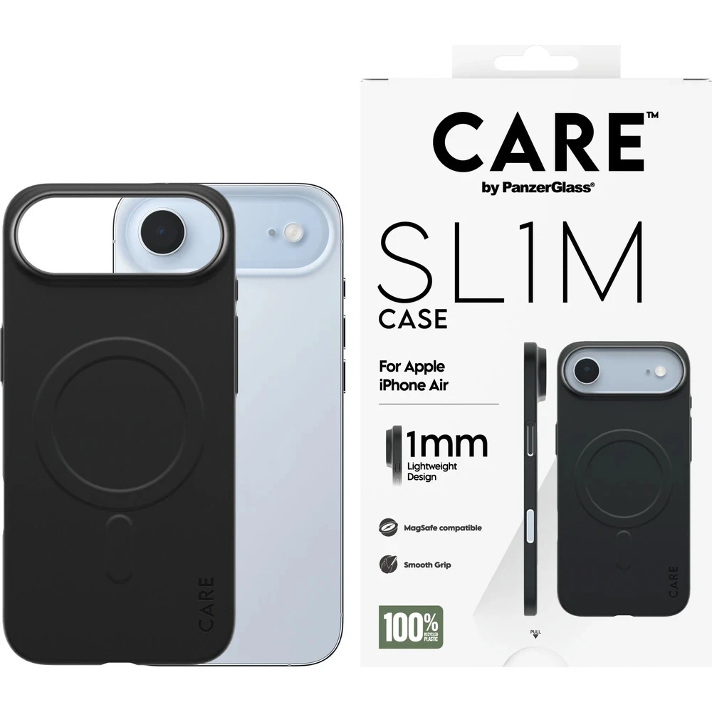 PanzerGlass® CARE SL1M je ultratenký a lehký ochranný kryt, který zvyšuje odolnost telefonu proti pádům a poškrábání • Nabízí pevnou konstrukci, přesné výřezy a spolehlivou ochranu při zachování elegantního, minimalistického designu • Pouze 1 mm: nejtenčí kryt CARE • MagSafe kompatibilita: s extra silným magnetem • Vyvýšená ochrana fotoaparátu: lepší ochrana proti poškrábání • Chytrý Nanotech coating: odolný vůči potu a make‑upu, snadno se čistí