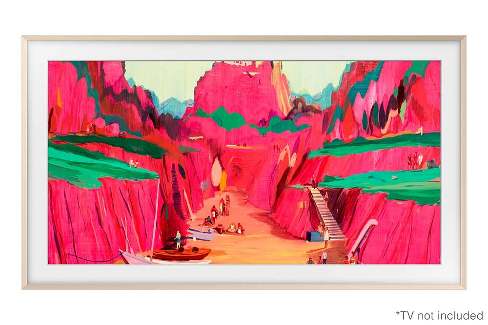 Prémiový výměnný kovový rám pro The Frame s úhlopříčkou 65", Zkosený design, Magnetické uchycení, Zlatá barva
