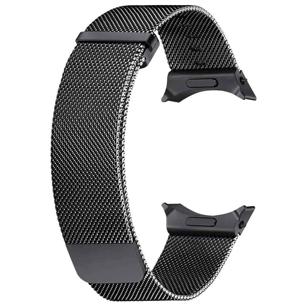 Řemínek pro Samsung Galaxy Watch, materiál prémiová nerezová ocel, s vlastním typem zapojení, pro obvod zápěstí od 16 do 21,6 cm, černá barva, design milánský tah