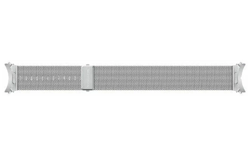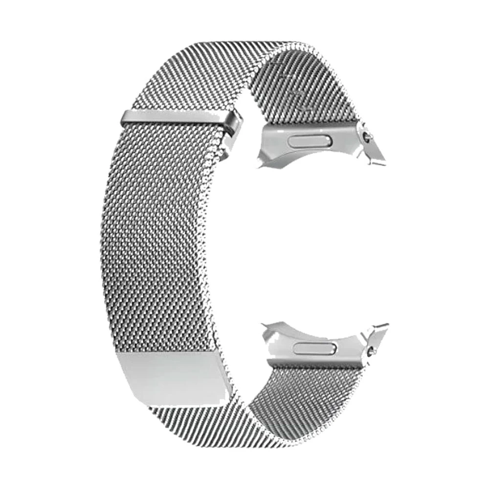 Řemínek pro Samsung Galaxy Watch, materiál prémiová nerezová ocel, s vlastním typem zapojení, pro obvod zápěstí od 16 do 21,6 cm, stříbrná barva, design milánský tah