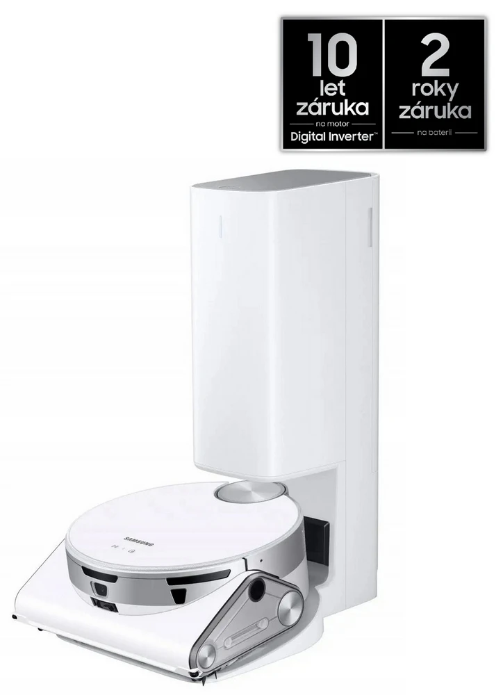 Samsung Jet Bot AI+ VR50T95735W/GE pohání digitální invertorový motor a řídí 4jádrový procesor R18, zásluhou čehož se řadí mezi absolutní špičku mezi robotickými vysavači. Oplývá mimořádně dlouhou životností a inteligentně řízeným automatickým sáním dle typu uklízeného povrchu. O nic se tedy nemusíte starat, Jet Bot AI+ je naprostým profesionálem ve všem co se pojí s úklidem i prostorově rozlehlejších bytů či rodinných domů. Plně omyvatelný koš na prach o objemu 0,2 l je samozřejmostí.