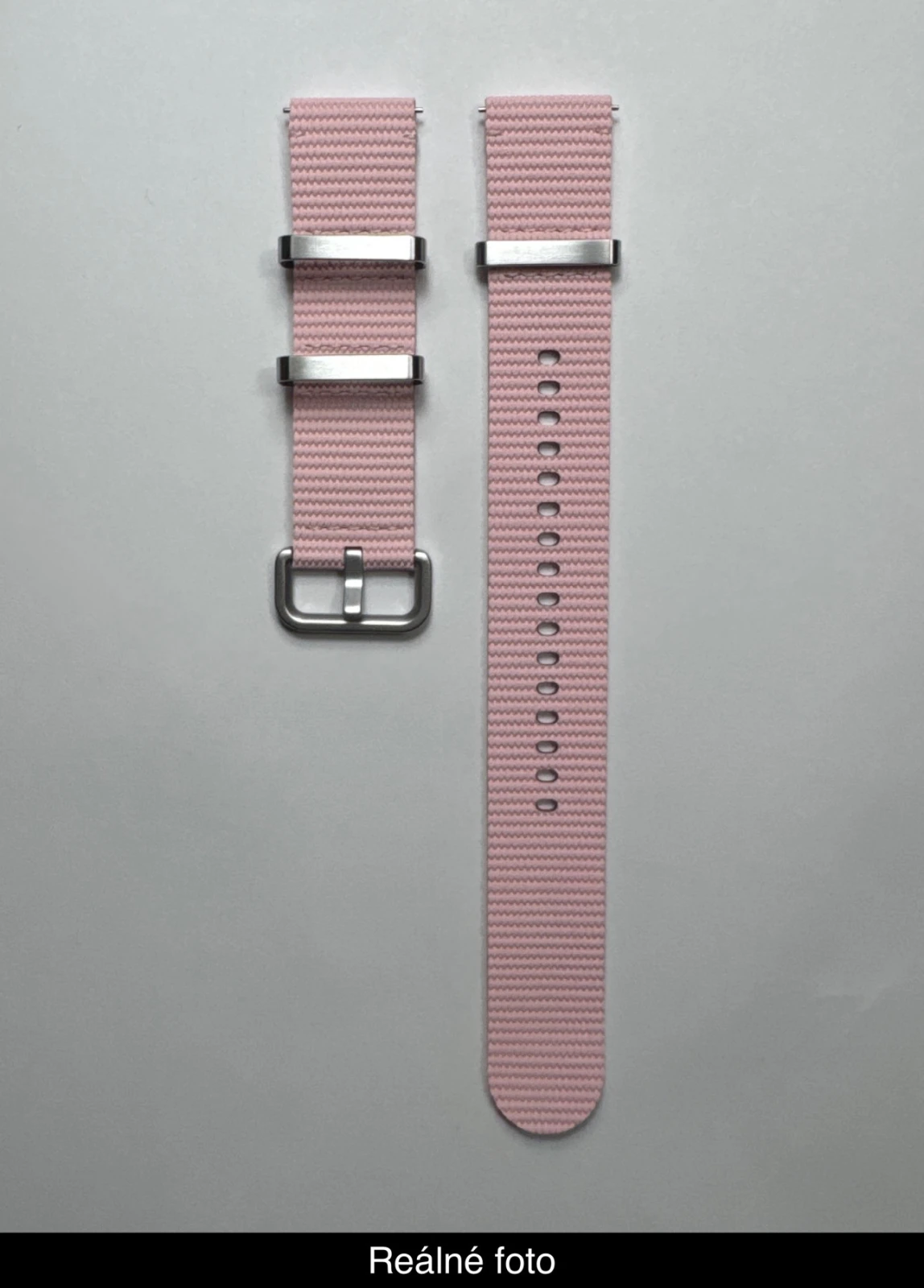 Originální stylový sportovní řemínek Galaxy Watch7 • Z komfortní dvoubarvé látky • Kompaktibilní také s Watch4/4 Classic, 5/5 Classic a 5 Pro, 6 a FE • Velikost S/M • Barva: růžová